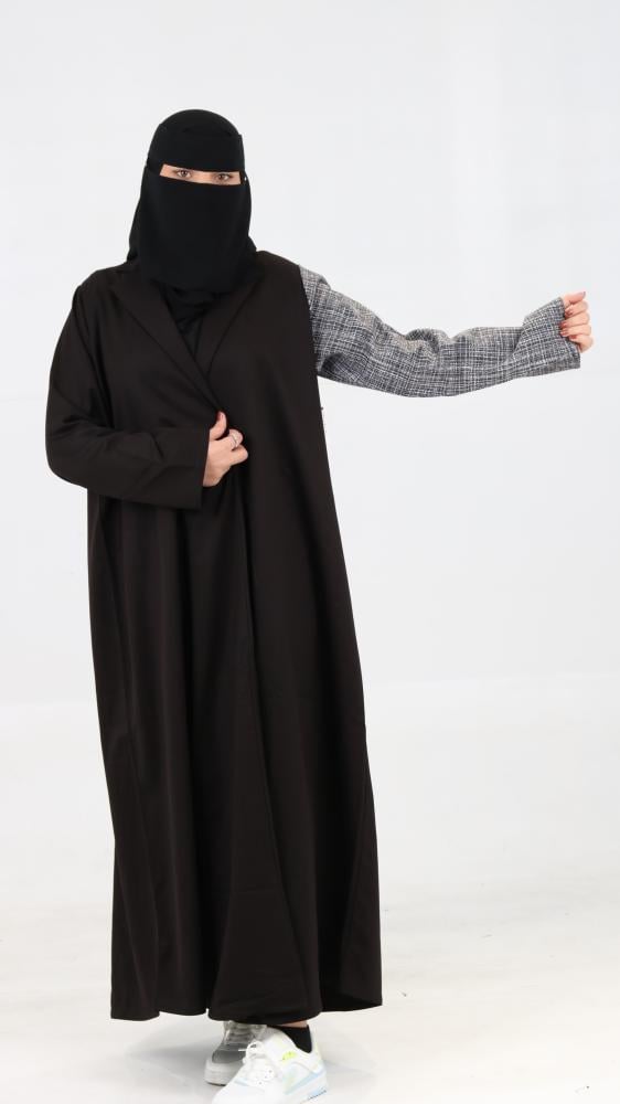 345 SARعباية ثقيله رمادي في اسود – لمسة فاخرة تجمع بين العصرية والرقي.